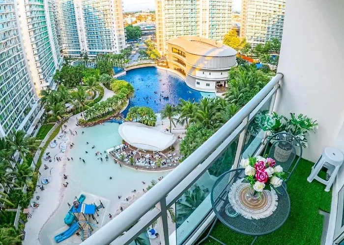 別荘の台所で自身の食事を作ることもできます。 宿泊施設から徒歩で18分先のBread Talkで食事を楽しめます。 Azure Beach View Near Airport 別荘少し離れたのBicutan Exitバス停からは、周辺エリアへの交通手段を利用できます。